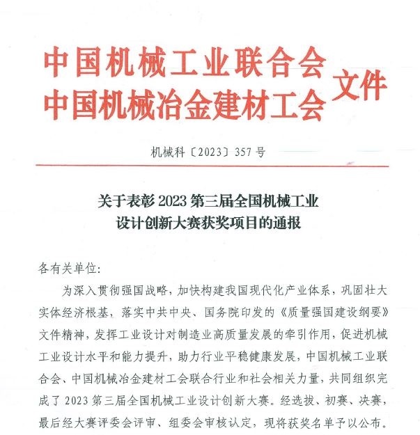 天下机械工业设计立异大赛由中国机械工业团结会、中国机械冶金建材工会团结主理,,,,,大赛以“设计立异、智造未来”为主题,,,,,旨在深入贯彻强国战略,,,,,加速构建我国现代化工业系统,,,,,牢靠壮大实体经济基本,,,,,施展工业设计对制造业高质量生长的牵引作用,,,,,增进机械工业设计水平和能力提升,,,,,助力行业平稳康健生长。。。。。