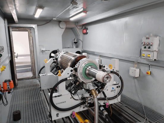 ?超高速转子动平衡:高速转子动平衡装备是高速大型电机制造的基础,,,,,,优德88官网网站引进了德国申克动平衡机,,,,,,该平衡机是申克为优德88官网网站特制。。。。。。使高速转子动平衡装备平衡精度G0.4,,,,,,具有电子角度定位,,,,,,可实现8000kg、15000rpm转子的高速平衡、超速试验。。。。。。